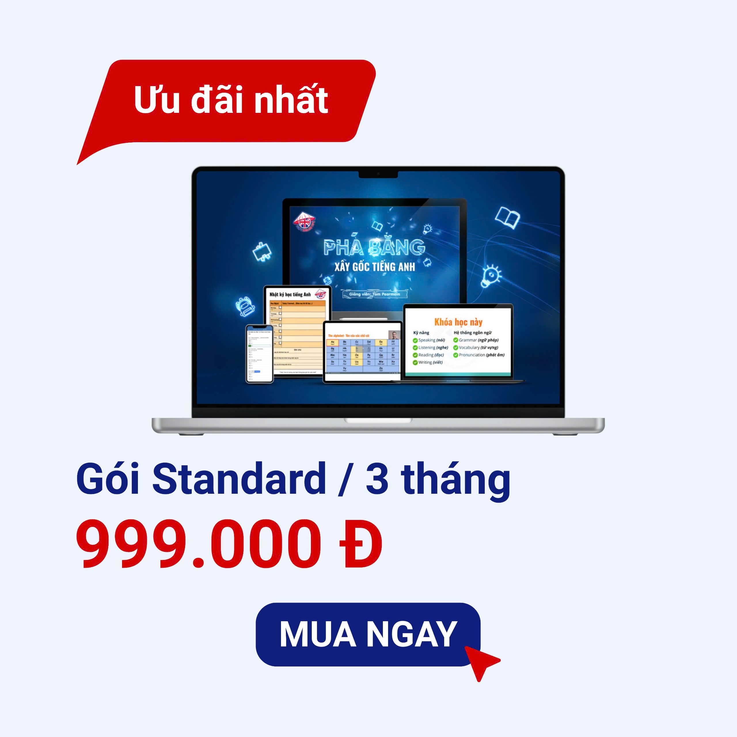 Tôi là một người chỉ biết Hello, Thank you, good bye, và nói tiếng Anh như khi tôi nói tiếng Việt một cách buồn cười, thế mà sau khi học khoá học cơ bản này của thầy, tôi đã có thể phát âm rất tốt, thậm chí giao tiếp cơ bản khi trò chuyện với thầy Tom bằng tiếng Anh. Tôi sẽ muốn học tiếp lớp nâng cao của thầy nếu thầy vẫn tiếp tục mở khoá học. Khoá học quá hữu ích và tôi sẵn sàng giới thiệu cho nhiều người nên mua!