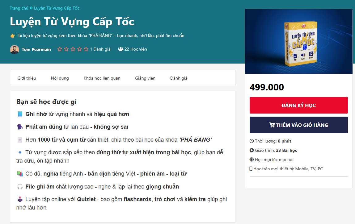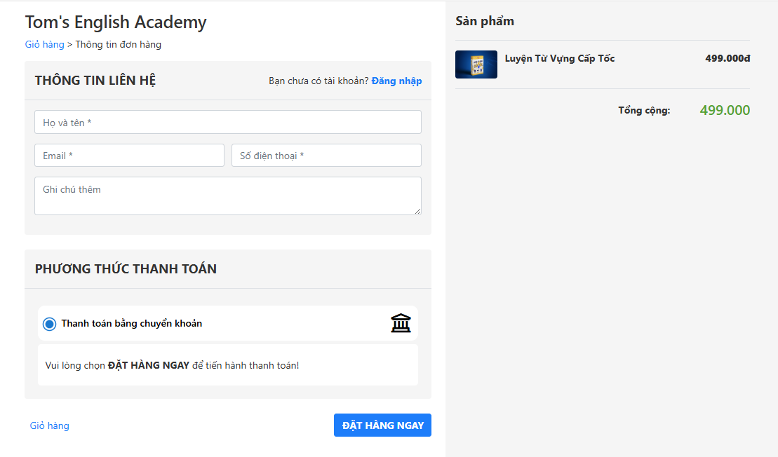 Bước 1: Khách hàng truy cập website Tomsenglishacademy.edubit.vn, giao